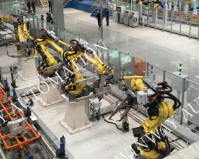 F45&F49&F52 機(jī)蓋線(xiàn),節(jié)拍60S,共3個(gè)車(chē)型,28臺(tái)機(jī)器人,其中七軸9臺(tái),共4個(gè)PLC。
